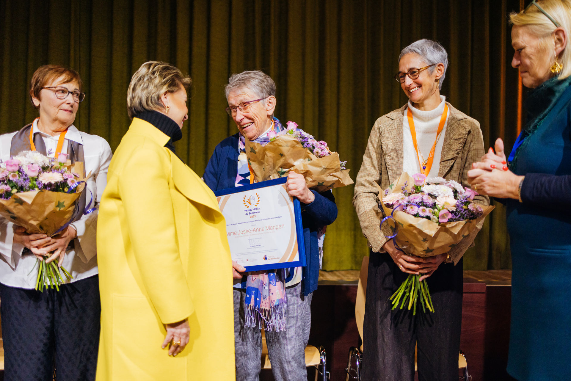 Un moment particulièrement émouvant a été la remise du Prix du Mérite du Bénévolat qui valorise l’engagement significatif d’un bénévole et qui, symboliquement, rend hommage à tous les bénévoles engagés, dévoués et inspirants au Luxembourg qui contribuent à renforcer les liens sociaux et à soutenir le tissu associatif. Le Prix du Mérite du Bénévolat 2023 a été remis cette année par Son Altesse Royale la Grande-Duchesse à Madame Josée-Anne Mangen (79 ans), bénévole de l’Amicale de la Maison de Soins et du Centre de Jour de l'Hôpital Intercommunal de Steinfort (Amicale HIS), pour son engagement à briser la solitude d’une personne âgée. Tout d’abord, membre fondateur de l’Amicale en 1997 puis présidente pendant 16 ans, Madame Mangen a donné de son temps pour offrir des moments de bien-être aux personnes âgées et créer du lien social.