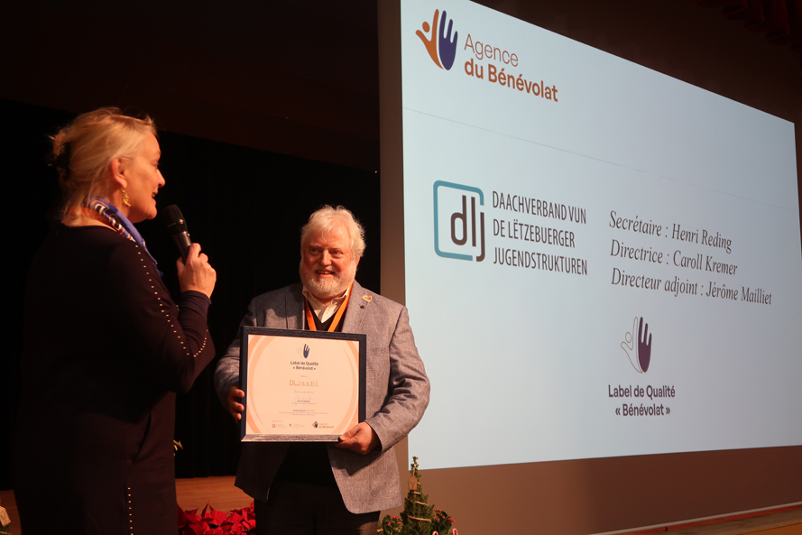 Suite au lancement du projet label de qualité «Bénévolat» en 2018, les premières associations à recevoir la distinction, Daachverband vun de Lëtzebuerger Jugendstrukturen (DLJ), Le Tricentenaire, Médecins du monde Luxembourg et Omega 90, ont été récompensées. Le label de qualité «Bénévolat» a été lancé afin de garantir aux bénévoles une expérience enrichissante et reconnue. L’accent du label est porté sur l’amélioration de l’organisation des associations ainsi que sur un niveau d’accueil et d’encadrement élevé des bénévoles. En rendant le bénévolat plus attractif, le label, attribué pour 5 ans, permet aux associations de se distinguer et ainsi, de développer et de fidéliser davantage leurs ressources bénévoles pour soutenir leurs actions.